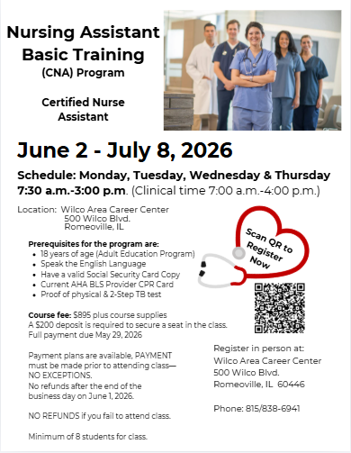Adult Wilco Summer CNA Course Registration